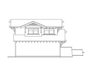 Ideal for a sloping lot, this Craftsman style garage apartment plan tucks neatly into any hillside. The lower level holds the 880 square foot, two-car garage equipped with two overhead doors and a service entry. The extra deep bays are perfect for boat storage and accommodate oversized vehicles. Exterior stairs provide access to the living quarters from the lower level or you can enter from the covered front porch where sturdy columns sit atop stone pediments. The entry reveals two large storage closets. Beyond, the open floor plan provides a studio apartment complete with compact kitchen and full bath. Note the convenient meal-prep island. Vaulted ceilings and plenty of windows make the living space feel open and spacious. Well suited for overnight guests, rental property or the in-laws this carriage house plan will complement any Craftsman style home!