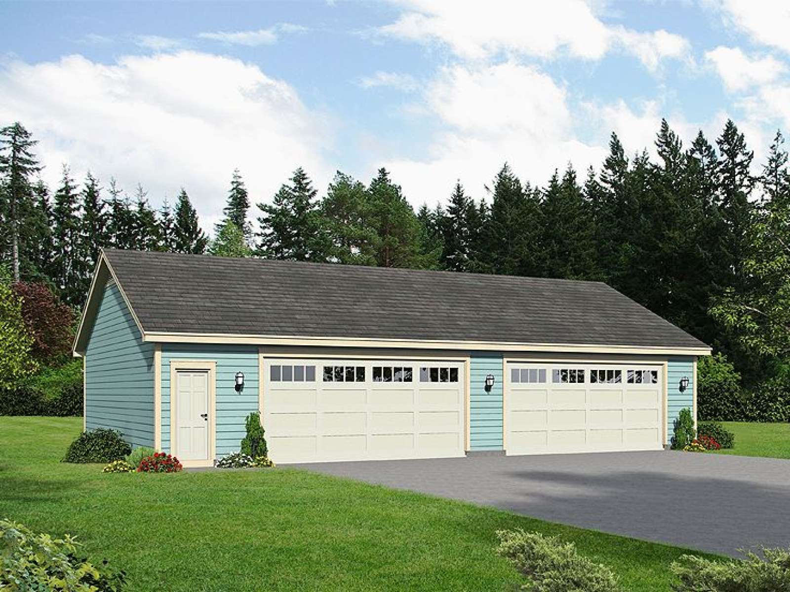 Simple, detached four-car garage plan