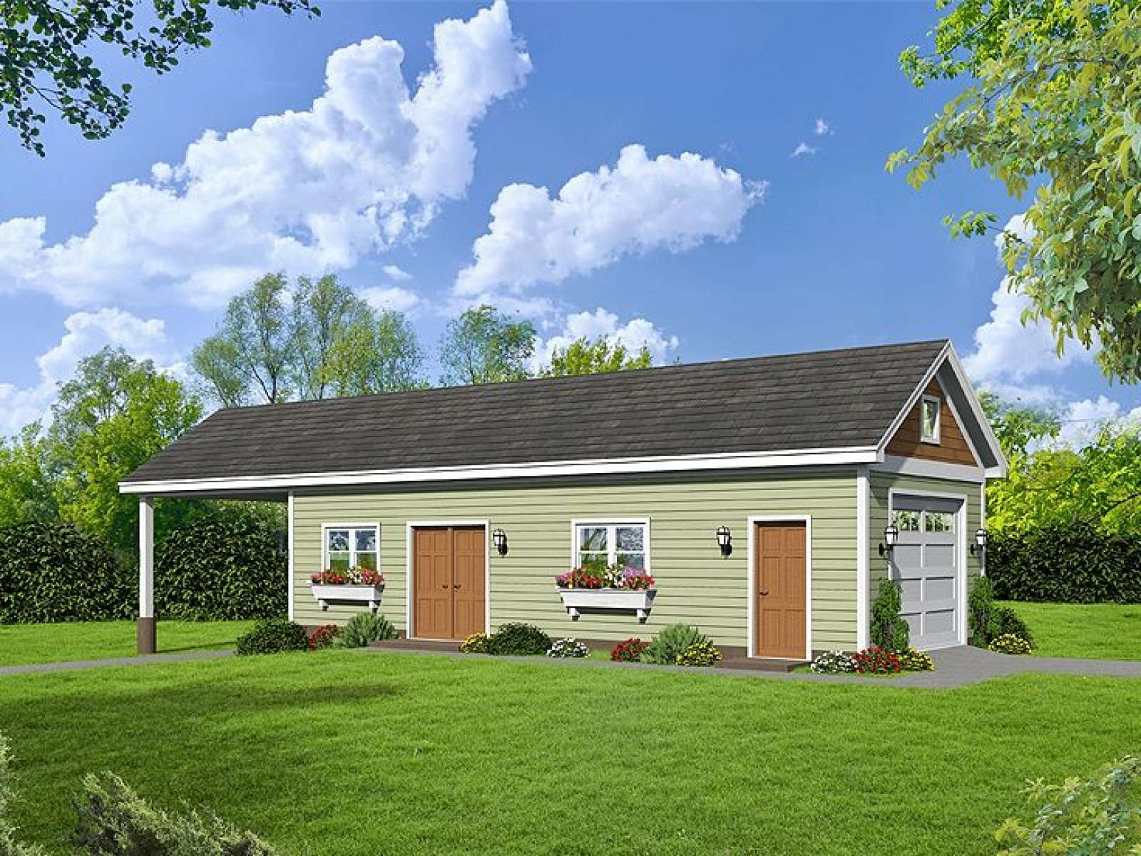 Carport can easily serve as a covered porch if you prefer