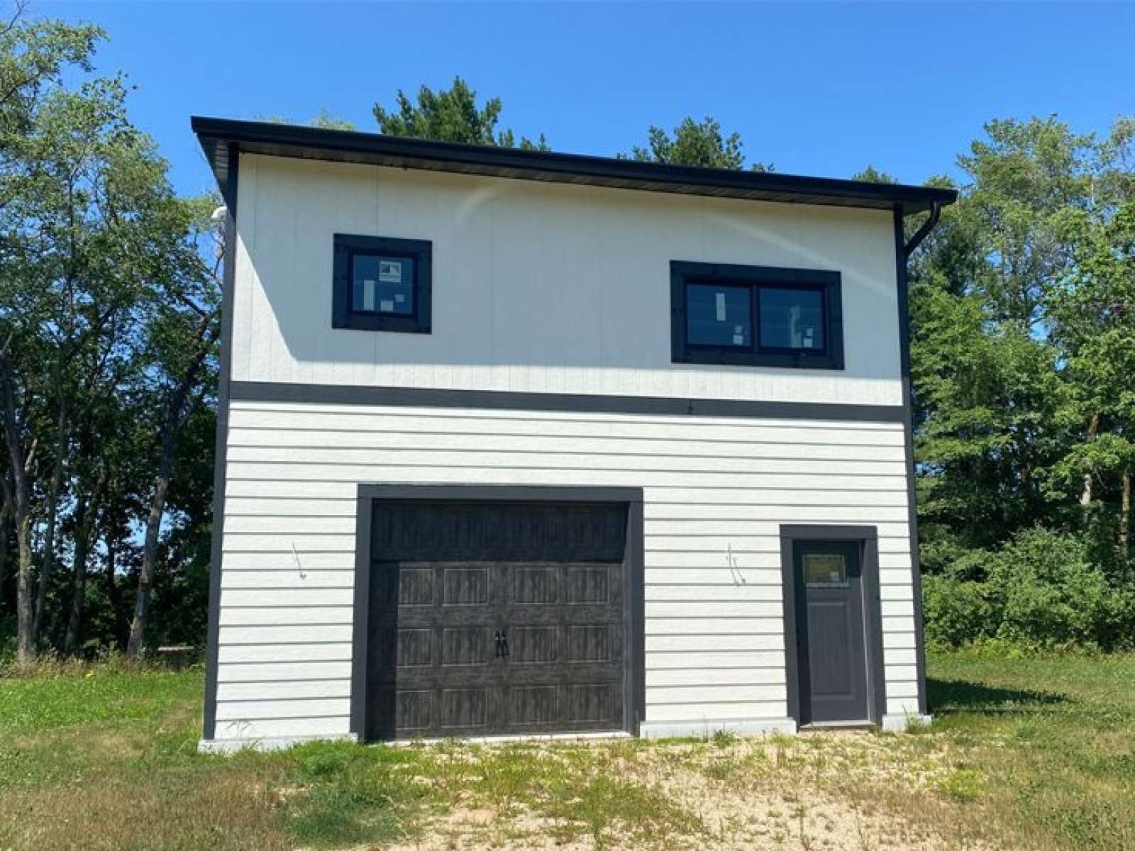 Second-floor living quarters offer one bedroom, one bath, a laundry closet and an open floor plan